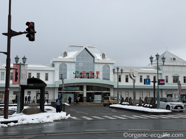お店は米沢駅の近くです。駅舎が可愛いです。